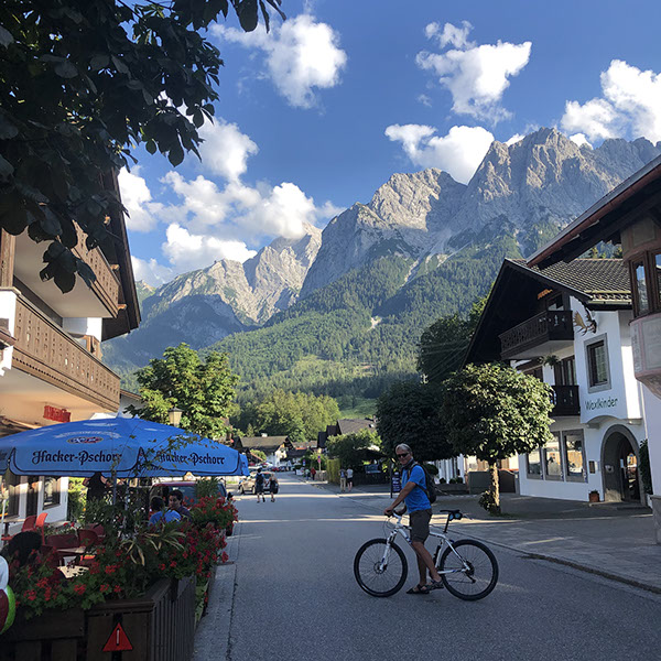 Wir beide hoch mit der Alpspitzbahn, dann ist Julia zur Kreuzeckbahn gelaufen (4,5 km, 1 Stunde) und zurück mit dieser Bahn (25€) während Volker die Wanderung von der Alpspitzbergbahn runter durch die Höllentalklamm macht (176 m hoch, 1442 m runter, 11,5 km, 4 Stunden). Julia war erstmal bei Edeka gegenüber dem Camping einkaufen und ich war voll überrascht, als Volker plötzlich gegen 15 Uhr am Wohni ankam. Wir entschieden uns, zum Eibsee mit den Fahrrädern zu fahren (ca. 20 km, 261 m Höhenmeter, 3 Stunden mit Aufenthalt am See und einen Bier am Eibsee Pavillon Biergarten (3,50/0,5l). Zurück zum Wohni gegrillt.