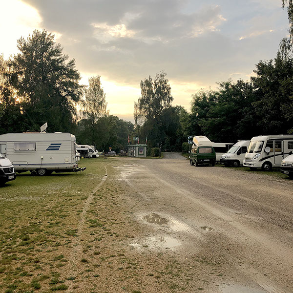 Unser Park- und Übernachtungsplatz in Eichstätt nach dem starken Regen und Gewitter