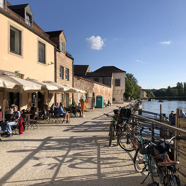 Um 9:48 Uhr mit dem Zug vom Landshut Hbf nach Friesing Bahnhof gefahren (19€ + Fahrräder 9,90€). Der Isar entlang gefahren (Isar-Radwanderweg) mit einem Stopp in Moosburg, wo wir mit einer netten Frau, die wir kurz vor Moosburg getroffen hatten, dort zu Mittag beim Café Weingraben gegessen (15€, alles sehr gut: die Weißwurst, die Brezen und die Rhabarber-Schorle waren sehr lecker!). Weiterfahrt und Entdeckung der Vorgelfreistätte Mittlere Isarstauseen auf dem Weg zurück nach Landshut (alles sehr informativ und gut gemacht). Zurück zuhause (50 km, ein paar Stunden), Julia fertig, deshalb Siesta, dann Abendessen beim Augustiner-Hof (sehr gut und sehr reichlich). Volker hatte eine Maaß dunkles Augustiner getrunken! Wir sind trotzdem hoch zum Landshuter Höhenwanderweg um den Blick auf die Stadt zu bewundern, dann sind wir noch zum Schloss gegangen. Anschließend unten noch ein Eis gegessen. Gleicher Übernachtungsort.