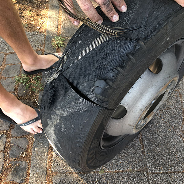 Der geplatzte Reifen, bei einer Bullenhitze austauschen...