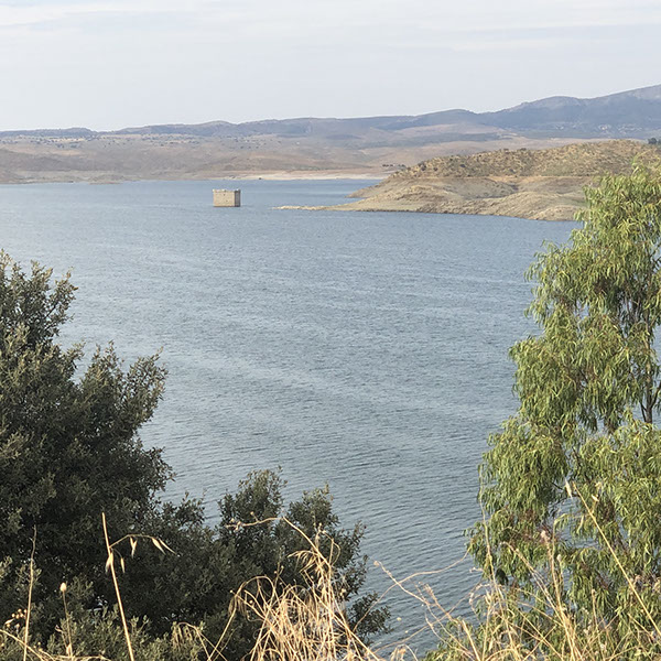 Fahrt über Burgos, Valladolid, Salamanca auf der A62 bis *** mit einem Mittagessen-Stopp bei der Ausfahrt Nr. 142 zum Restaurante Ruta 62 in Villamarciel (sehr gut, gute Portionen, nur 12€/pax für Vorspeise, Hauptspeise, Nachspeise, Kaffee, 1 flasche Rotwein, 1,5 l Wasser!). Dann noch in der Stadt getankt, und durch die Stadt gefahren, so dass wir einen netten Eindruck von Tordesillas bekommen haben und werden sicher nochmal hierher kommen. Fahrt bis vor Cáceres, wo wir nach Westen zu einem Stausee bei Garrovillas de Alconétar gefahren sind uns auf ein Parking gestellt haben, der kein schönen Access hat, aber der Blick ist super. Mitten im See guckt einen alten Turm wie Torre de Belém raus. Es ist sehr warm, und wir haben erst schön geduscht, bevor wir uns dann draußen gesessen haben bis es kühler wurde. Viele kleine Bichos im Wohni, die irgendwie durch das Mosquito-Netz durchgekommen sind. N39º41'26" E6º28'6"