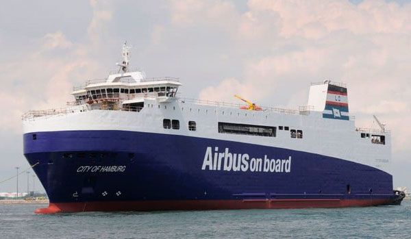 Das Schiff "Airbus on Board" haben wir heute zweimal gesehen! Das fuhr von Mobile, Alabama nach Montoir, France.