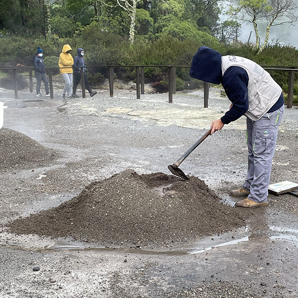 Nun kommen spezielle Mitarbeiter der Stadt und buddeln es aus