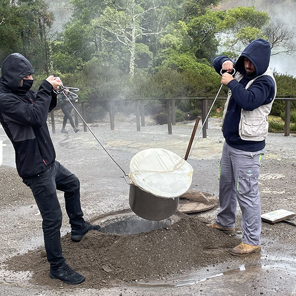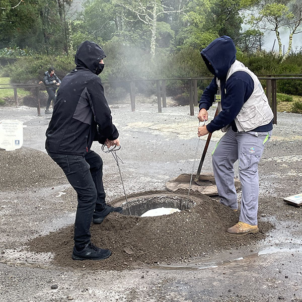 Hier wird unser Cozido (Eintopf) 7 Stunden vorbereitet. Jedes Restaurant hat sein "Loch"