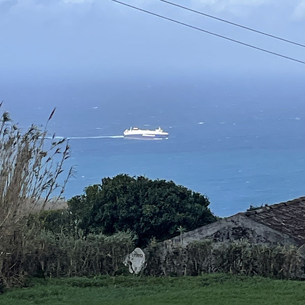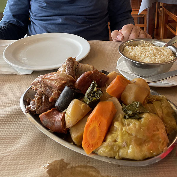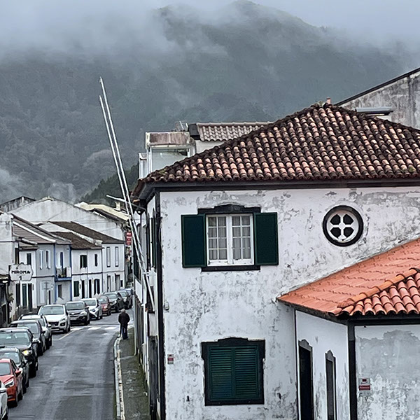 Fahrt nach Westen Richtung Sete Cidades mit Stopp am Miradouro do Pico do Carvão (Lagoa das Empadadas) - Miradouro da Vista do Rei (Sete Cidades) - Miradouro da Boca do Inferno bei der Lagoa do Canário; da haben wir einen anderen Weg zurückgenommen, dass ziemlich schlimm war und dazu hat es noch geregnet! - Miradouro do Cerrado das Freiras - Sete Cidades Centro - Miradouro da Ponta do Escalvado, das auch früher ein Wahlbeobachtungsturm war, dann nach João Bom bei Mosteiros, um eine kurze, aber schreckliche Wanderung "Um den Pico de Mafra" zu machen (5,75 km, 1h30', 308 Höhenmeter, nur ein kurzer Teil war schön, der Rest auf schrecklichen aufgewühlten Wegen). Bei Santo António im Resto 4 Plátanos Almojantar gemacht (24€ ganz ok, es war schon spät und die Küche machte um 16 Uhr zu, 24€). Dann endlich zurück zum Hotel.