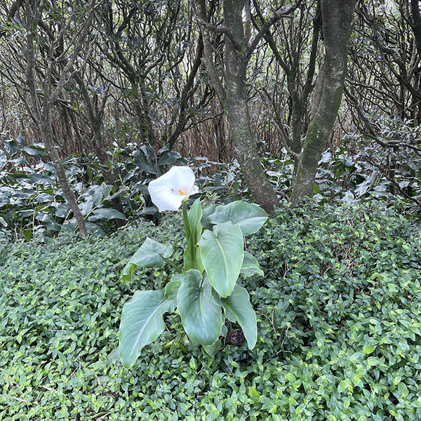Solche Blumen (Zantedeschien) findet man wild und vereinzelt in der Landschaft