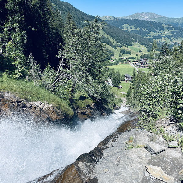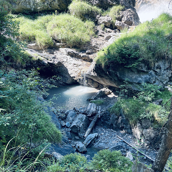 Lenk: Simmenfälle. Oben rauscht es runter und unten plätschert das Wasser ruhig in ein Pool: https://youtube.com/shorts/VJMrFjqOfIs