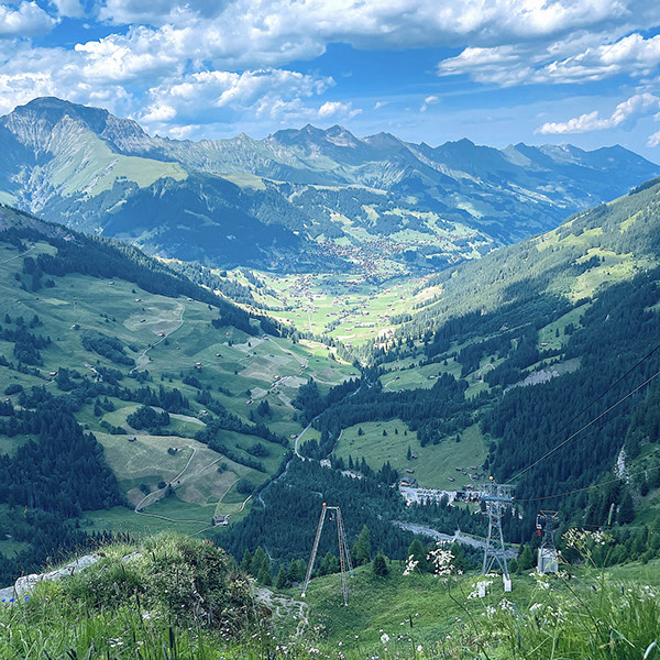 Blick auf Adelboden Dorf von ganz oben Engstligenalp