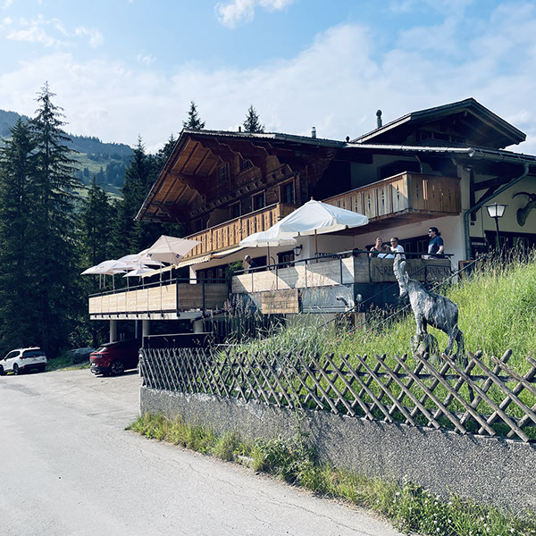 Adelboden Unter den Birg: ein Drink beim Steinbock Restaurant vor dem Abendessen