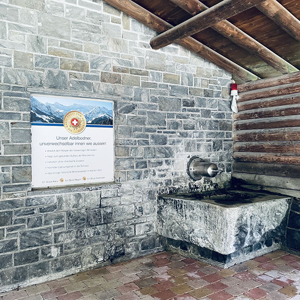 Adelboden: die Mineralquelle an der Talabfahrt kurz vor der Brücke
