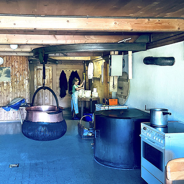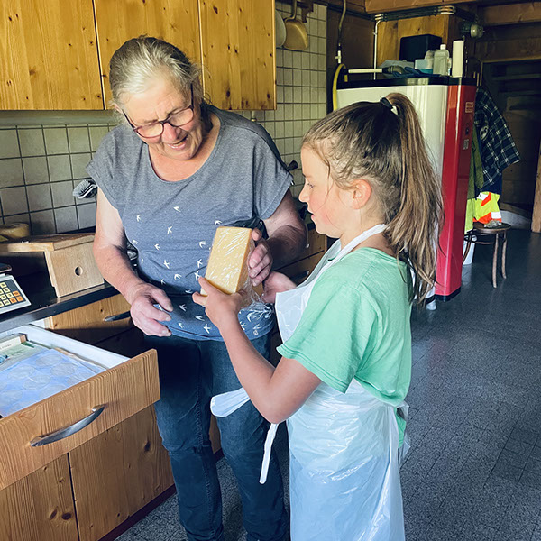 Diese Käserei von Familie Wäfler produziert immer noch traditionnell Käse. Hier hilft die Enkelin Luana (11 Jahre)