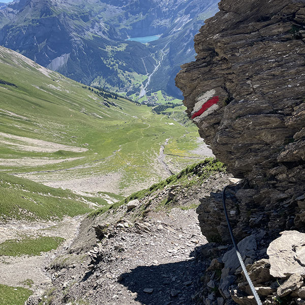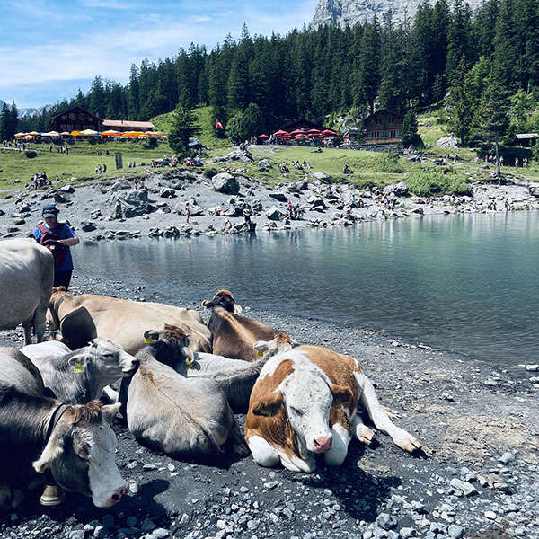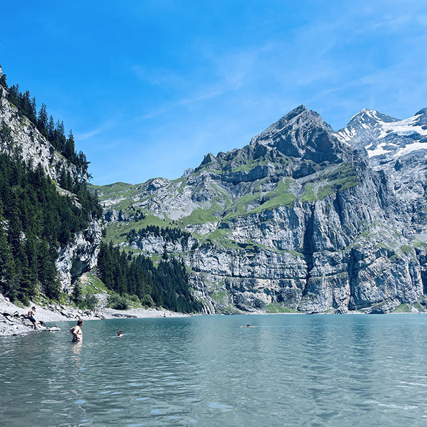Mit der Oeschinen-Gondelbahn hoch (15 CHF/pax Halftax) dann zu Fuß bis zum Oeschinensee, und Wanderung Heuberg-Ober Bärgli" sind wir bis auf 2000 Meter hochgelaufen. dann wieder runter bis Kandersteg (420 Hm hoch, 850 Hm runter, 6 Stunden mit mehreren Pausen bei den Bergbeizlis). Tolle Wanderung durch diese Gletscher und Seelandschaft. Zurück zuhause erstmal ein Gin-Tonic und Grillabend.