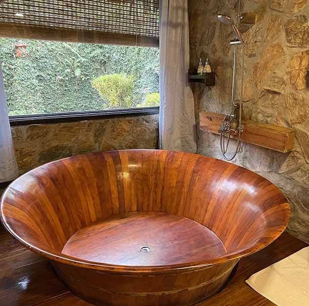 Die Badewanne/Dusche in der Mai Chau Eco Lodge