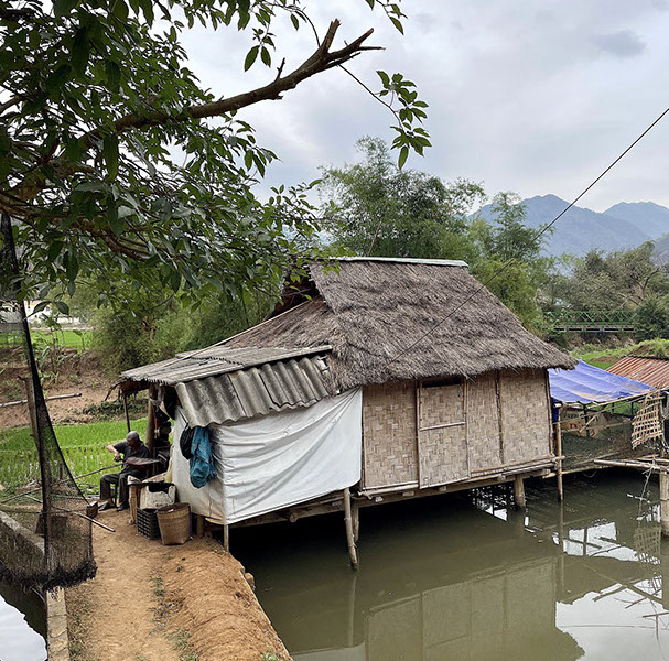 Nach dem Frühstück 45 Minuten zum Dorf Xa Linh hoch gefahren (1150 Höhenmeter, das von dem Bergvolk der H'mong bewohnt ist. Sehr interessanter Spaziergang und Besuch eines Hauses einer älteren Frau mit zwei Enkelkindern (sehr beindruckend, wie basic sie leben!). Runterfahrt nach Mai Chau Mittagessen in der Sunset Bar Boutique Hotel, sehr lecker, in unserem Package inklusive. Nachmittags zum Dorf Sam Khoe gefahren, wo wir einen Spaziergang bei weißen Thai Dorf gemacht haben, angeblich vor den Tonkinesischen "Alpen". Danach zurück ins Hotel und Julia Thai-Massage um 18 Uhr, Volker noch Spaziergang im Dorf.