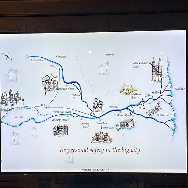 Das ist die Route unseres Schiffes Jahan. Wir fahren allerdings nur bis Phnon Penh