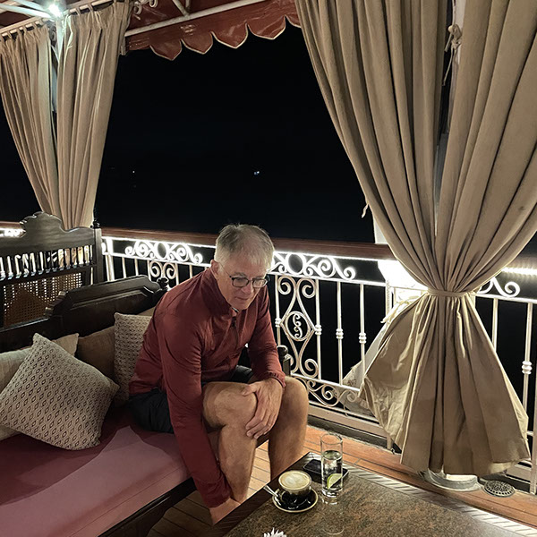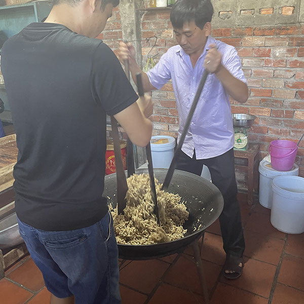 Um 6 Uhr aufgestanden, Kaffee getrubnken, 6:30 Uhr Tai Chi, sehr schön. Nur Volker hat richtig gefrühstückt, ich habe nur 3 Mini-Bananen gegessen. Heute gehen wir zum Dorf von Cái Bè. Dort haben wir uns anschauen können, wie Reispapier gemacht wird (das wusste ich schon), danach wie Kokosnussmilch extrahiert wird und daraus Bonbons gemacht werden (die sehr lecker sind!). Darüberhinaus, wie Reispopps und Nudelpopps (diese sind besonder lecker! da haben wir eine Packung gekauft für 40k VDN) gemacht werden, auch Reisschnapps (mit Schlange usw.). Zurück zum Schiff um 11 Uhr, chillen, Mitttagessen und um 14:30 Uhr auf dem Weg zur Insel Binh Thanh Island in Sadec besuchten wir eine ursprüngliche Gemeinschaft. Unser Schiff Jahan ist heute bis vor Tan Chau (22 Uhr) gefahren. Wir haben noch den Film "Good Morning Vietnam von 1987 gesehen, bevor wir ins Bett gegangen sind.