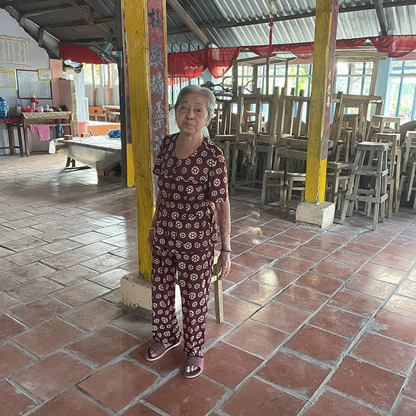 Besuch der Gemeinschaft auf der Insel Binh Thanh, wo die Ältesten von ihrem Leben erzählt haben. Diese Frau ist 86 Jahre alt