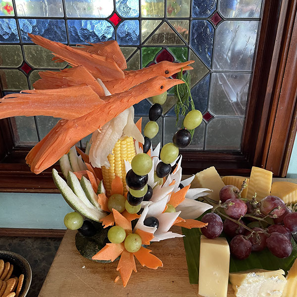 Deko auf dem Buffet-Tisch des Boots