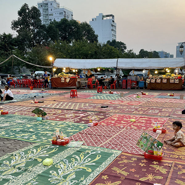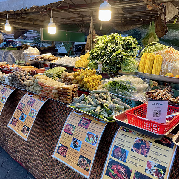 Der Night Market in Phnom Penh: hier der food market mit Boden-Sitzplätzen