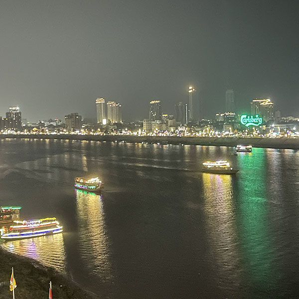 Phnom Penh: Das Ufer gegenüber ist auch hell beleuchtet