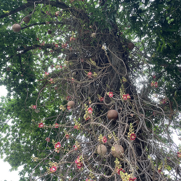 Phnom Penh: eine ausgefallene Parasiten-Pflanze. Die runde Frucht kann man nicht essen.