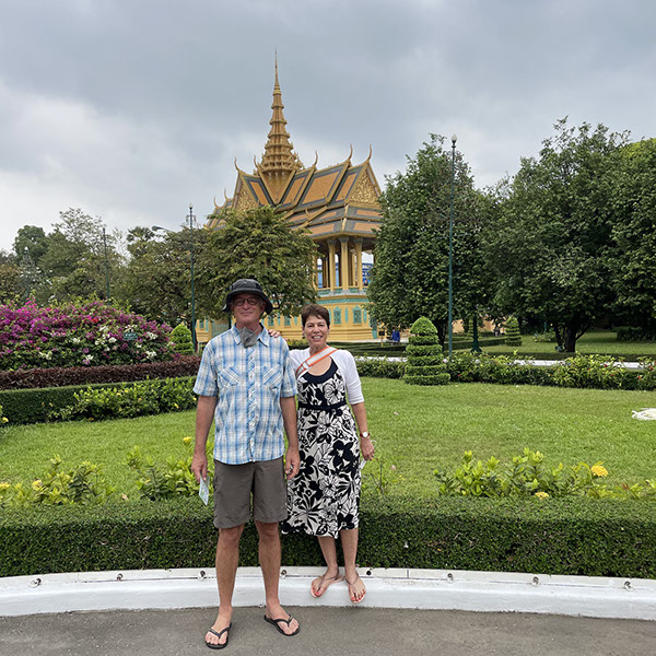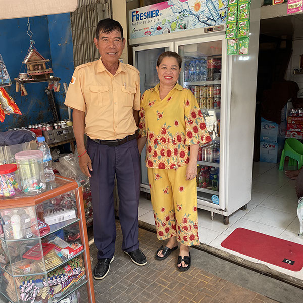 Phnom Penh: Herr Tee und seine Frau vor deren Geschäft