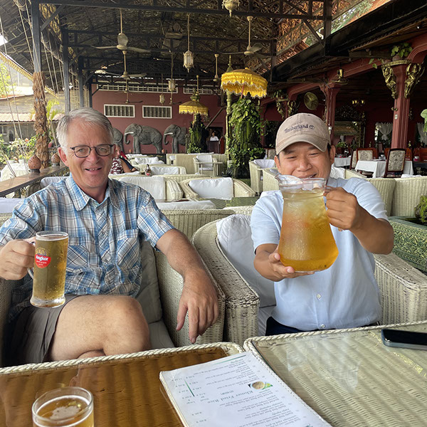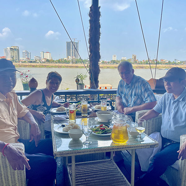 Phnom Penh: im Restaurant Titanic mit unserem Fahrer und Guide Mr. Tee