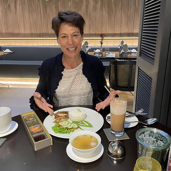 Phnom Penh: mein Frühstück, ein Bai mit Chicken